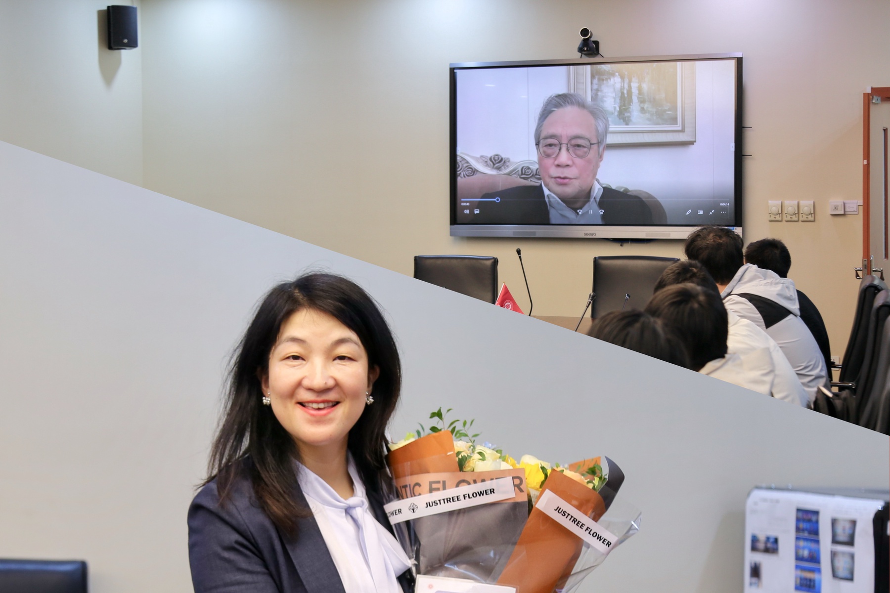 讲座伊始,何明老师即代表学院向履新的张红老师表示祝贺并提出殷切期待,后由学生代表献花致意。现场还播放了张红老师的博士生导师、著名国际问题研究专家冯绍雷教授的寄语视频,令其深为惊喜与感动。